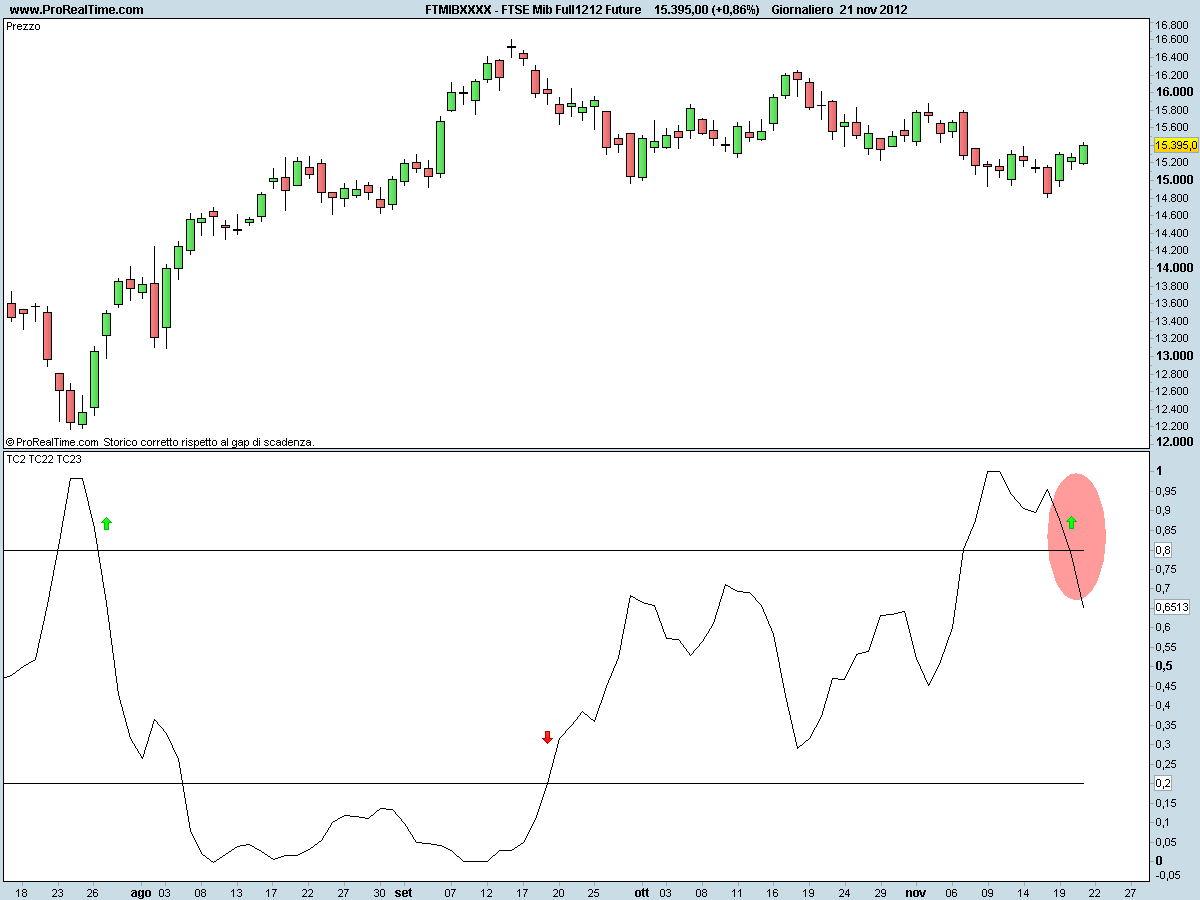 Il 20 Novembre TC2 ha generato un segnale sul time-frame giornaliero, come evidenziato nell’ellisse rossa.