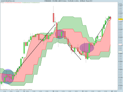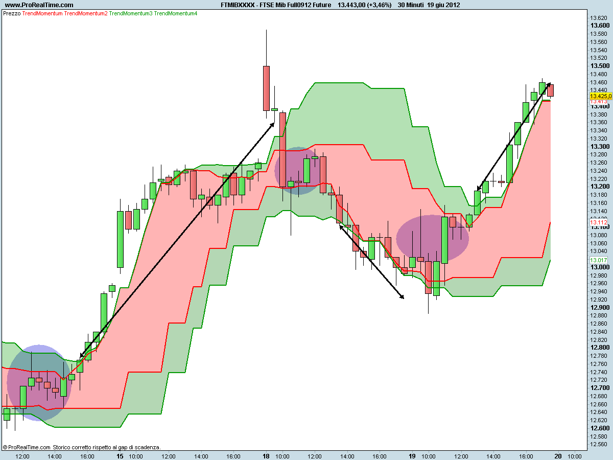 Nelle ellissi blu sono evidenziati i movimenti laterali del Future (più di due chiusure consecutive all’interno della banda rossa), mentre le frecce indicano i movimenti direzionali.