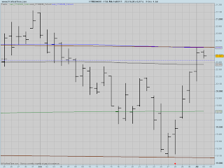Linee tratteggiate viola: proiezione settimanale di Running Bisector;