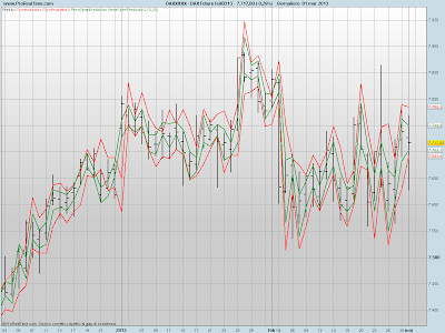 La linea rossa (verde) mostra i livelli  individuati da Trading con il Prezzo di Chiusura (Apertura).