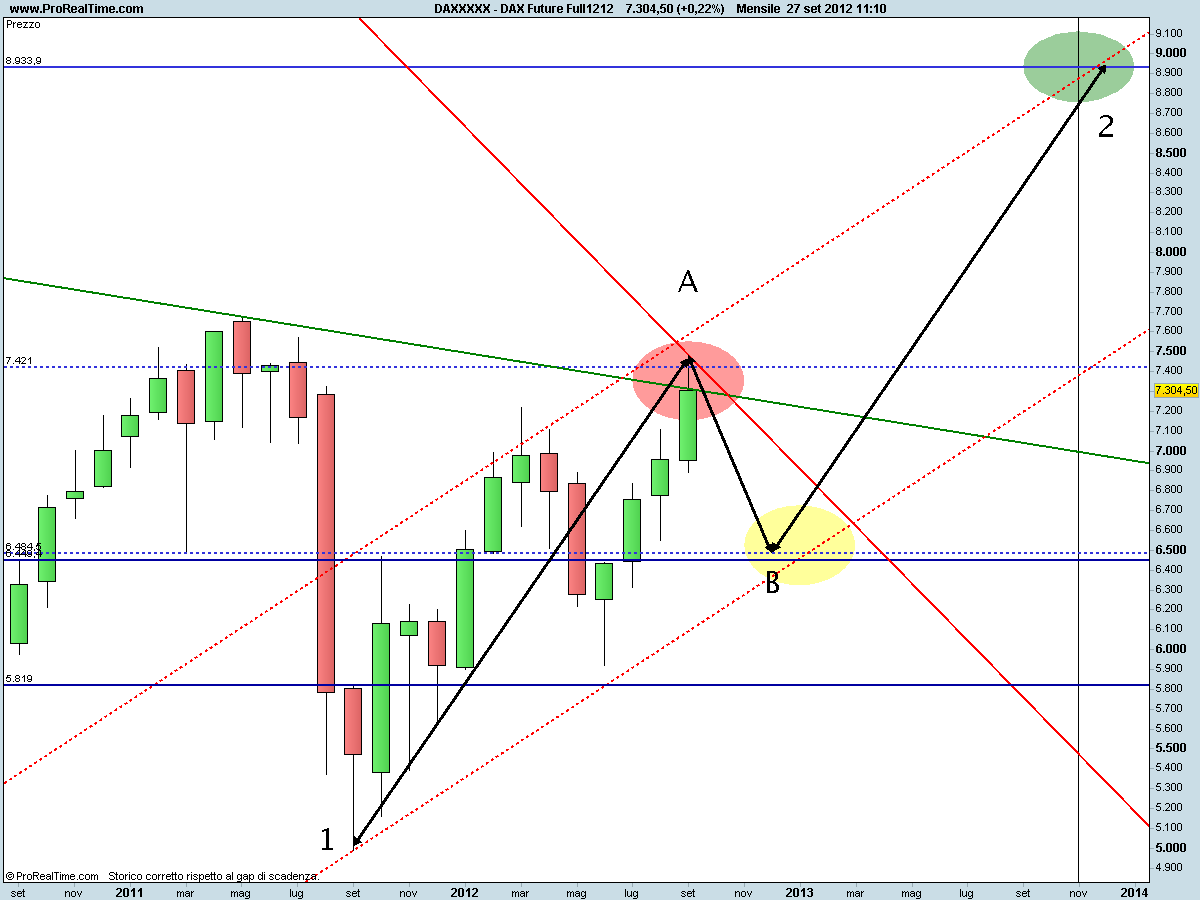 La nuova Legge della vibrazione di Proiezionidiborsa, ad esempio, sul Future Dax, proietta il seguente scenario: