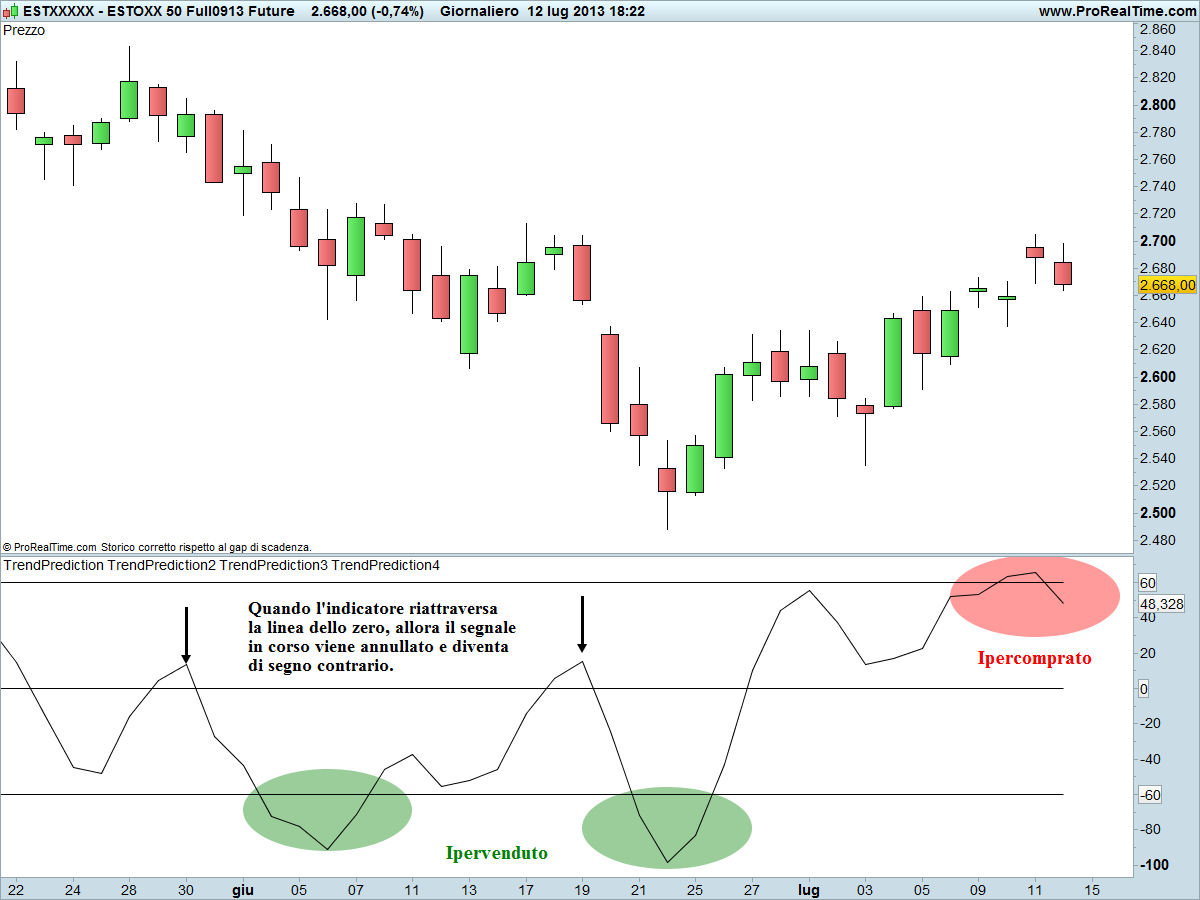 Nel grafico Trend Prediction applicato al Future Eurostoxx