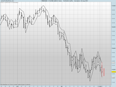 Domani le quotazioni del Future FTSE Mib si dovrebbero muovere all’interno della banda rossa individuata da Trading con il Prezzo di Chiusura.