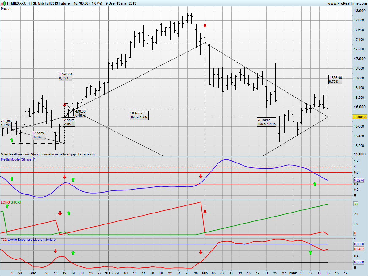 La tendenza in corso del Future FTSE MIB attraverso FEI, TC2, Mountain Method