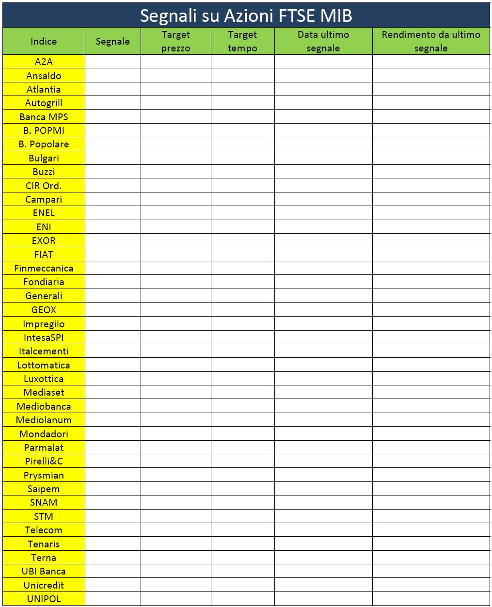Segnali su tutti i Titoli (40 )dello Spmib 40