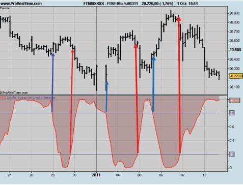 Le frecce blu indicano le operazioni Long