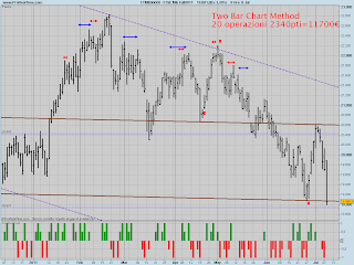 Nel grafico precedente sono riportate tutte le operazioni effettuate utilizzando il metodo Two Bar Chart sul Future FTSE MIB dal 1 Gennaio 2011 ad oggi.