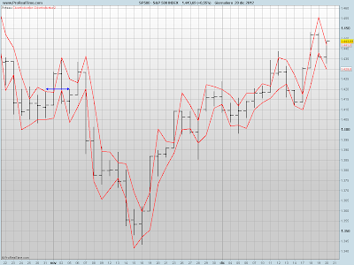Nel grafico precedente sono mostrati, sulla destra, in rosso i valori odierni ottenuti mediante l’ebook Trading con il Prezzo di Chiusura e in verde quelli ottenuti con l’ebook Trading con il Prezzo di Apertura.