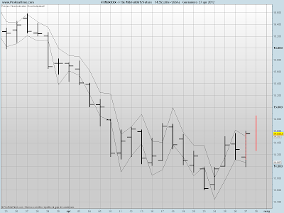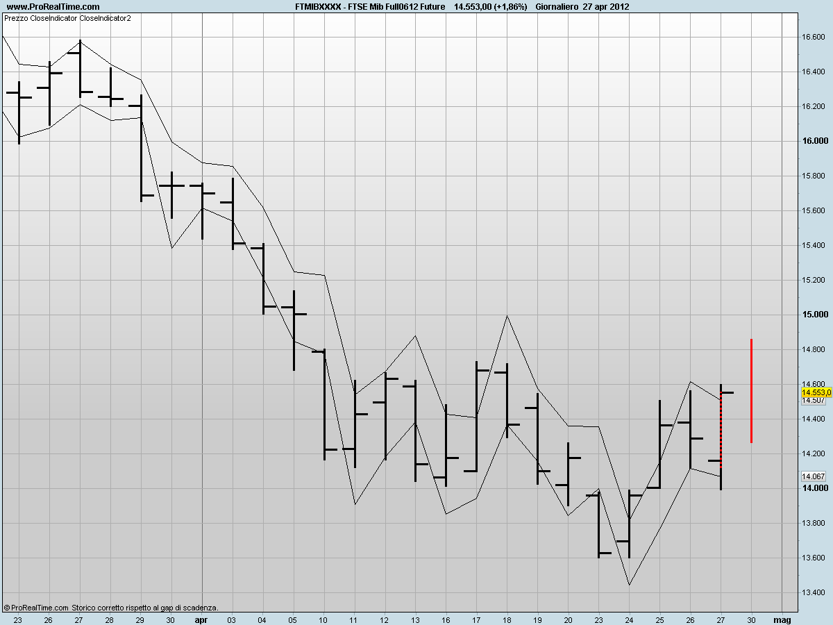Domani le quotazioni del Future FTSE Mib si dovrebbero muovere all’interno della banda rossa individuata da Trading con il Prezzo di Chiusura.
