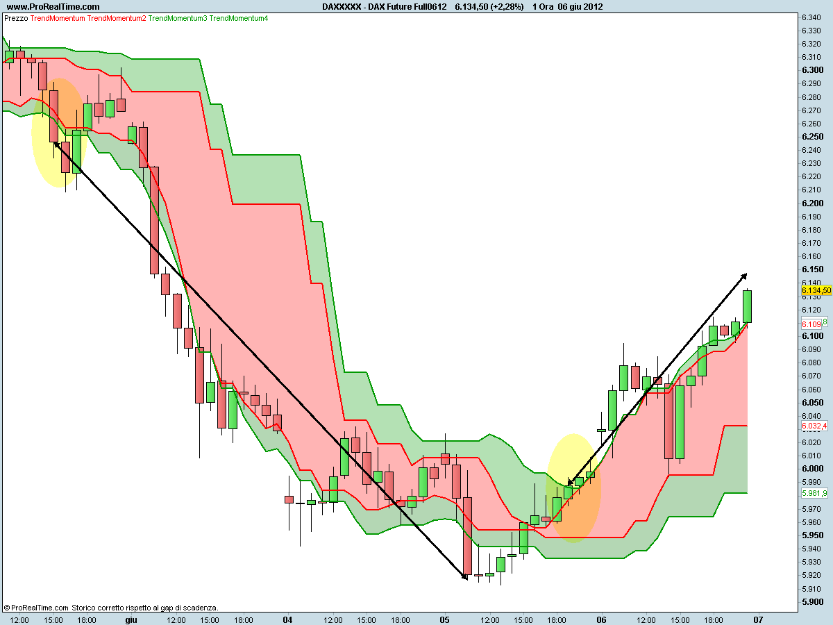 Questa sera vogliamo mostrarvi il comportamento di Trend e Momentum in prossimità del minimo degli ultimi giorni. Analizzeremo il Future FTSE MIB e il Future DAX.