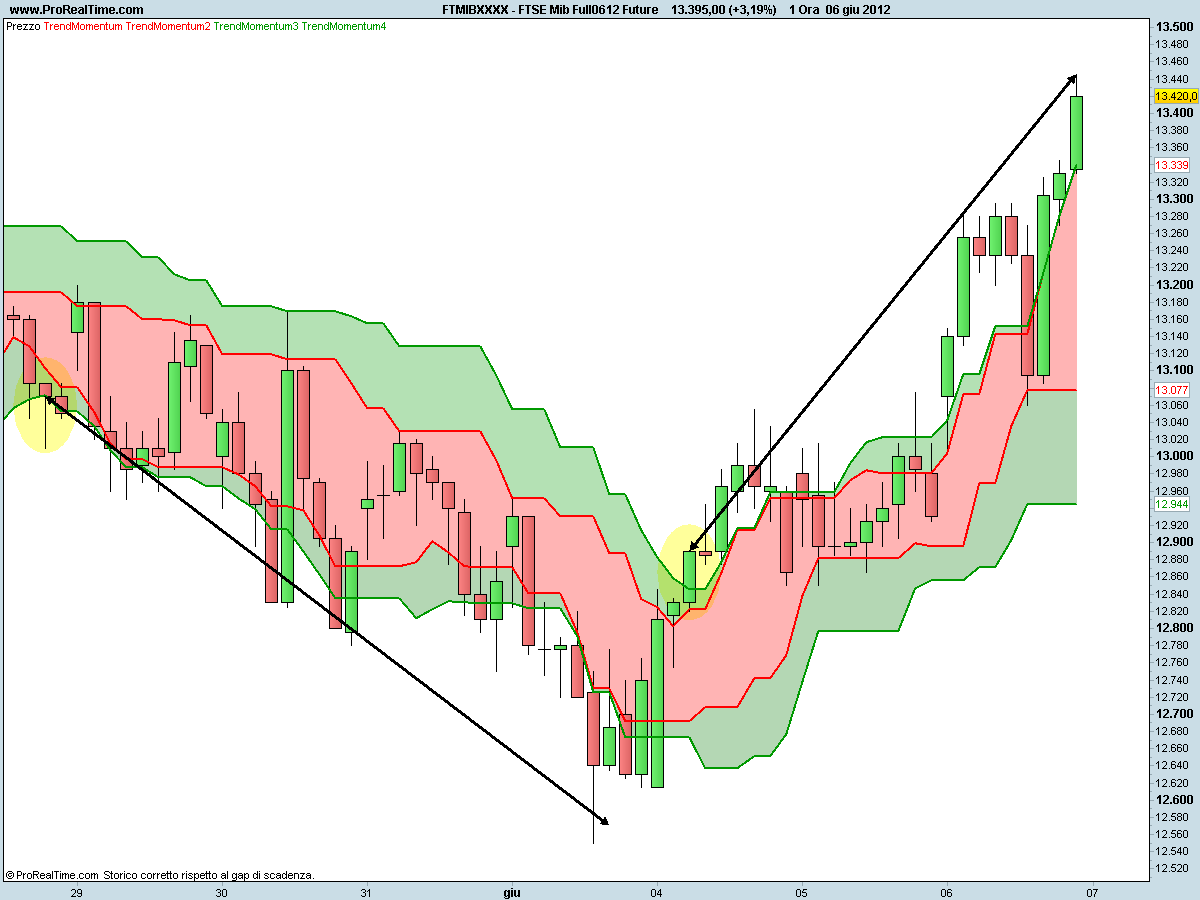 Successivamente il 4 Giugno alle 12 a 12890 (ellisse gialla) abbiamo avuto un segnale LONG tuttora in corso.