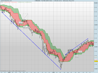 Il segnale LONG generato la settimana del 13 Aprile 2009 in area 16400 si è protratto fino a Novembre 2009 in area 23400. Stiamo parlando di circa 7000pti di FIB. Da notare che c’è stato un solo falso segnale a Luglio 2009 che ha comportato una perdita di circa 2800pti.