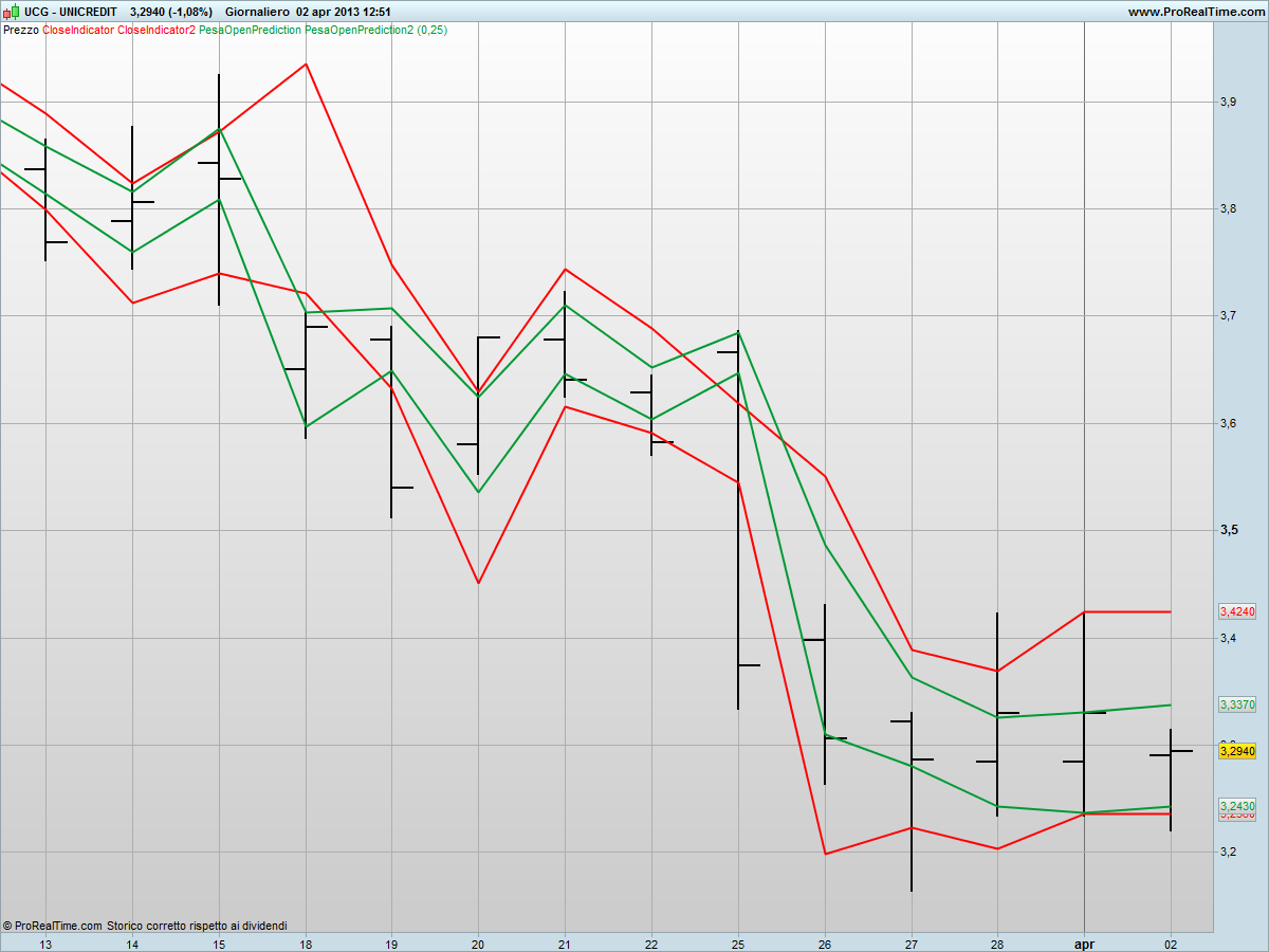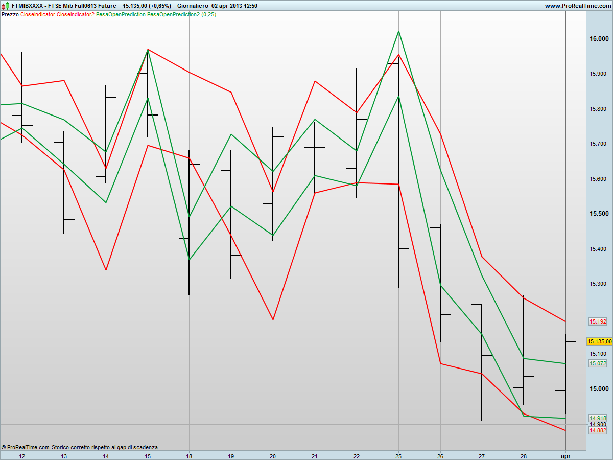 In rosso i valori de il Trading con il Prezzo di ChiusuraIn verde i valori de il Trading con il Prezzo di Apertura